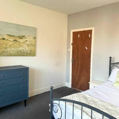 Room 3 is a large double room on the first floor. It comes fully furnished with a double bed, wardrobe, and drawers.