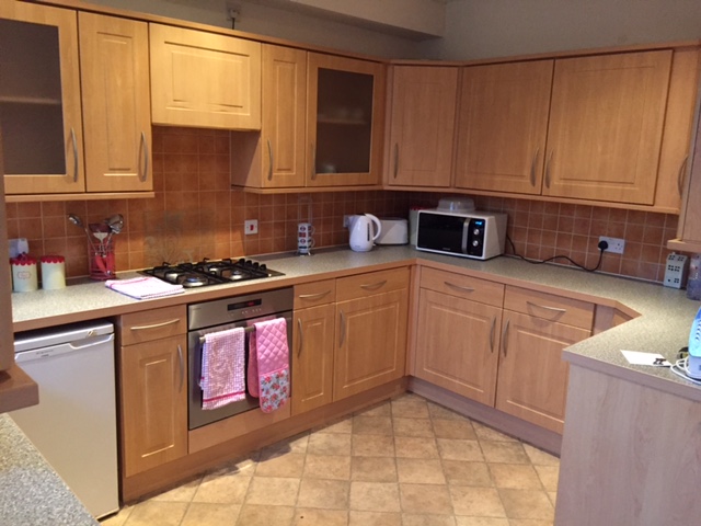 Fully equipped kitchen: cooker, oven, microwave, fridge, freezer, toaster, kettle, washing machine.